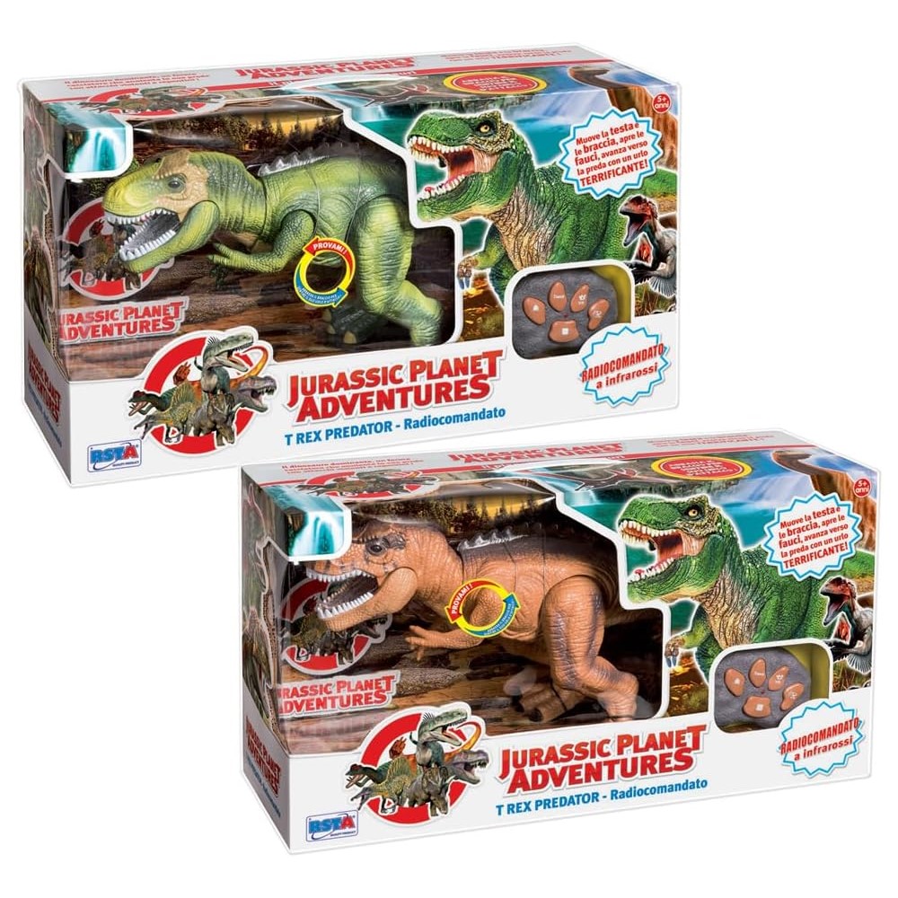 T Rex predator radiocomandato ad infrarossi. Muove la testa, le braccia, apre le fauci e avanza verso la preda. Ronchi Supertoys Dinosauro radiocomandato Jurassic Planet Adventures. Età consigliata (min): 5 anno/i, Genere consigliato: Ragazzo/Ragazza, Tema: Jurassic Planet Adventures. Prodotto a scelta secondo disponibilità, da specificare al momento dell’ordine. Il prodotto necessita di 5 batterie tipo AA non incluse nella confezione