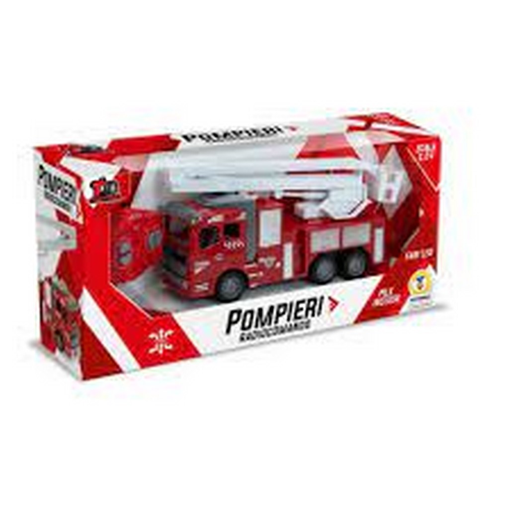 Camion dei Pompieri Radiocomandato Giocattolo per bambini, Scala 1:24, con Luci a LED. il Camion dei Pompieri è radiotelecomandato da un telecomando con frequenza 27.145MHz, le batterie sono incluse. Con un semplice controllo potrai far muovere il giocattolo in tutte le direzioni. Nella parte anteriore sono posizionati 2 fari a LED per illuminare il tragitto mentre il Camion è in moto. Raggiunge un altezza di 40cm.